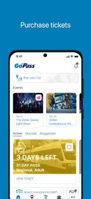 GoPass is the all-in-one travel tool that is like having a travel-sized tour guide at your side. GoPass is the easy way to buy transit passes for DART, Trinity Metro, Tulsa Transit, Star Transit, CitiBus, DCTA and CCRTA – right on your phone! GoPass is so easy to setup and use – you’ll never buy a paper ticket again!