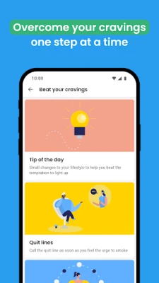 QuitNow is a proven app designed to motivate you to quit smoking. It encourages you to avoid tobacco by helping you visualize yourself as a non-smoker. Quitting becomes easier when you focus on these four key areas:
