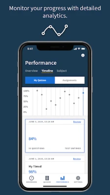 Your competency changes as you study. Your dashboard will feature a visual representation of your performance over time. Identifying growth or plateaus can help you target trouble areas and maximize your study time.