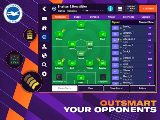 Outsmart your opponents on the field by choosing a world-class playing strategy modeled on the most dominant tactical styles in soccer, or create your own unique formation as you look to beat your rivals.