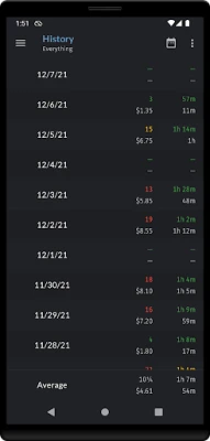 ★ Provides a summary for the day that tracks the number of cigarettes, time from last smoke, average time between cigarettes, money and time spent